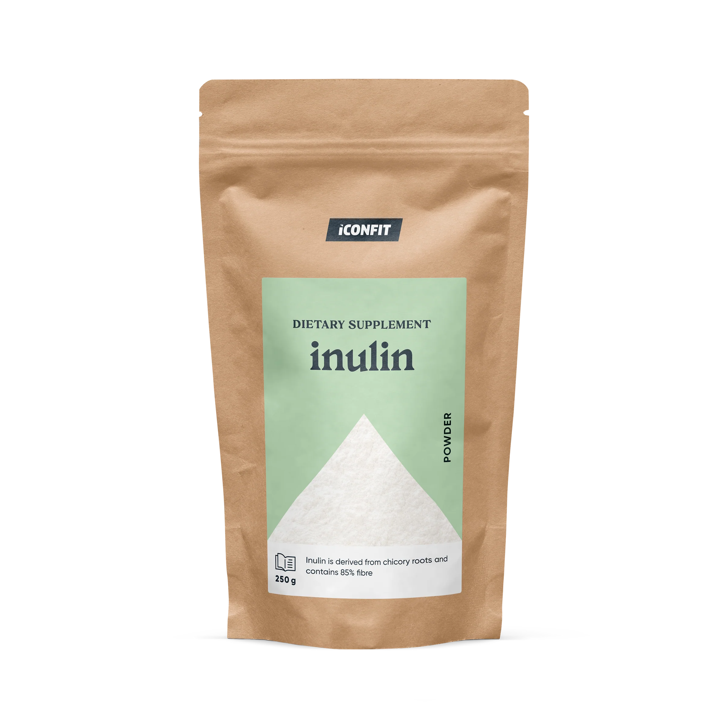 Inulinas– prebiotiška skaidulinė medžiaga, gaunama iš natūralios cikorijų šaknies, yra miltelių pavidalo, kurioje yra daug skaidulinių medžiagų. Dėl švelnaus skonio ir nedidelio saldumo (maždaug 30 % cukraus saldumo) tai yra universalus priedas prie patiekalų ar kokteilių. Šios skaidulos ne tik padeda virškinimui, bet ir gerina kalcio pasisavinimą iš maisto, kuris būtinas stipriems ir sveikiems kaulams. Kadangi jame yra 85 % skaidulų, inulinas padeda palaikyti sotumo jausmą, ir tai ideali svorio reguliavimo plano sudedamoji dalis, nes mažina bendrą suvartojamų kalorijų kiekį.Mitybos ekspertai pataria kasdien suvartoti ne mažiau kaip 25 g skaidulinių medžiagų, tačiau daugelis žmonių šio tikslo nepasiekia. tokiu atveju ICONFIT inulinas padeda – vienoje 12 g porcijoje yra daugiau nei 10 g skaidulinių medžiagų, todėl tai yra paprastas ir veiksmingas būdas padidinti suvartojamų skaidulinių medžiagų kiekį per dieną.