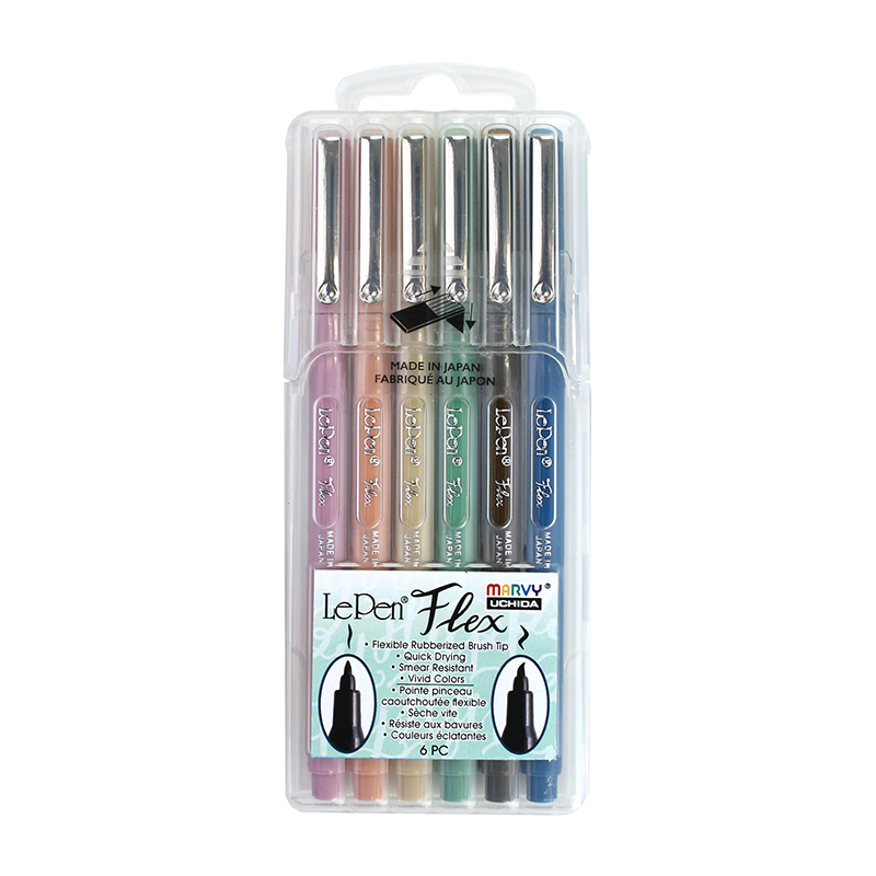 MARVY rašikliai teptukiniu galiuku #4800-6R „Le Pen Flex” Retro, 6 spalvos