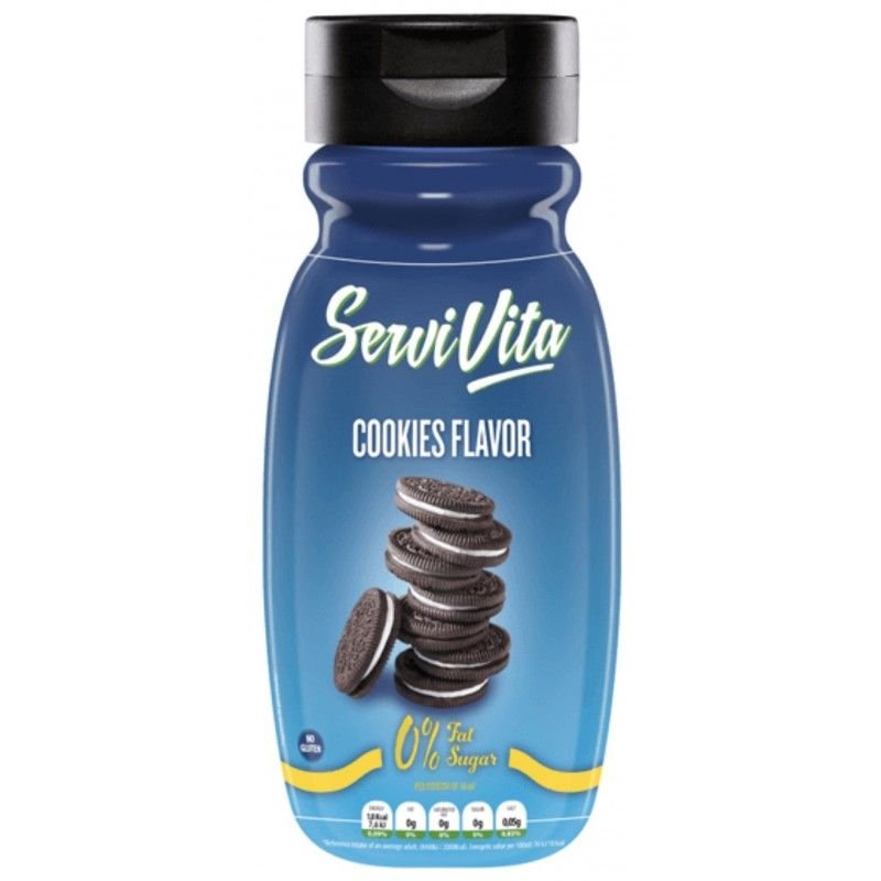 Servivita Cookies Dessert Sauce yra skanus, saldus padažas be cukraus, riebalų ir mažai kalorijų. Idealiai tinka mėgstamiems receptams suteikti ypatingą atspalvį arba mėgautis kaip ledų, kokteilių ir baltymų kokteilių užpilą.