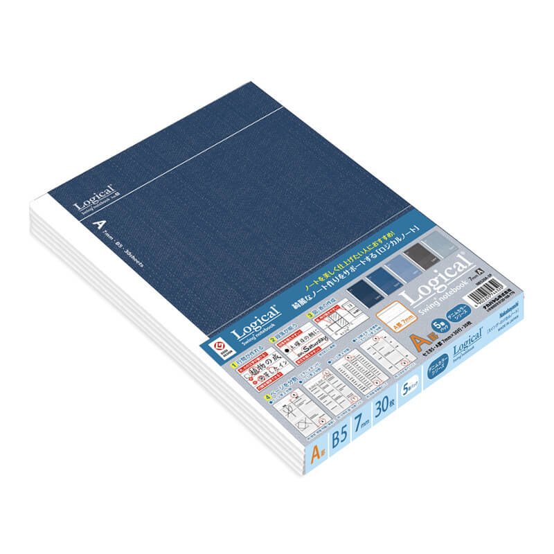 Užrašų knygelės „Nakabayashi Swing Logical“ – semi B5/A, linija 7 mm-įv. spalvų (5 vnt.) NB520A-5P